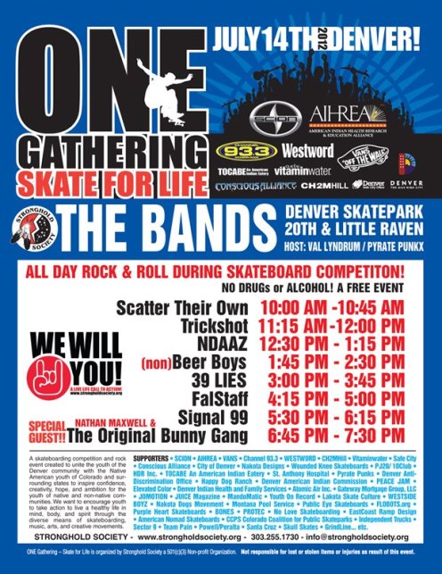 THE BANDS!! Check out this line UP!! our ONE Gathering Skate For Life Stage is gonna rock!!! Nathan Maxwell & The Original Bunny Gang, Signal 99, Falstaff, 39 LIES, Beer Boys(“nonBB” 4 the cause), NDAAZ, Trickshot, Scatter Their Own…. Rock&Roll, Metal, Punk Rock and hardcore skatin!!!!! WE WILL ROCK YOU!